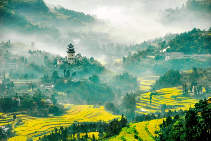 告别石笋峡的自然雕琢,向西北方向的凤鸣镇东部行进,便踏入群山环抱的黎明古村。黎明古村位于重庆市云阳县凤鸣镇东部,距云阳城区25千米,面积5.67平方千米,至今约有400年历史。清朝中期“湖广填川”移民活动兴盛,彭氏一族定居于此后,历经世代繁衍壮大,逐渐形成独特传统村落格局。作为中国传统村落与重庆市首批历史文化名村,其完整保留了晚清农耕庄园风格的建筑群。其中以国家级文物保护单位彭氏宗祠为核心,“彭家老屋”“四合院”“石板岩院子”三处市级文物保护单位散布山谷,构成渝东地区保存最完好、建筑形态最独特的晚清地主庄园建筑群。